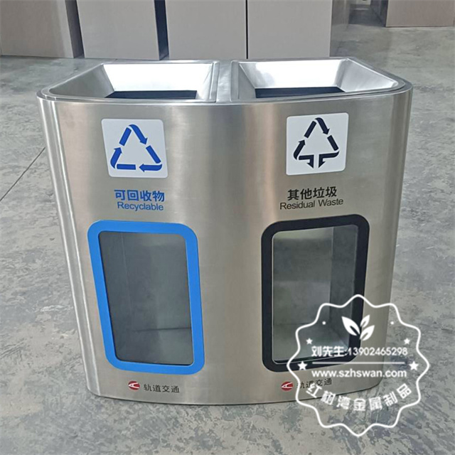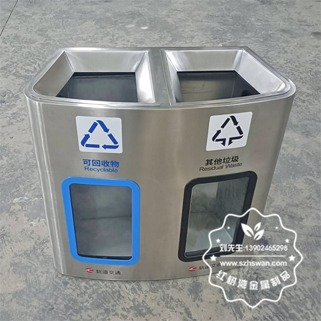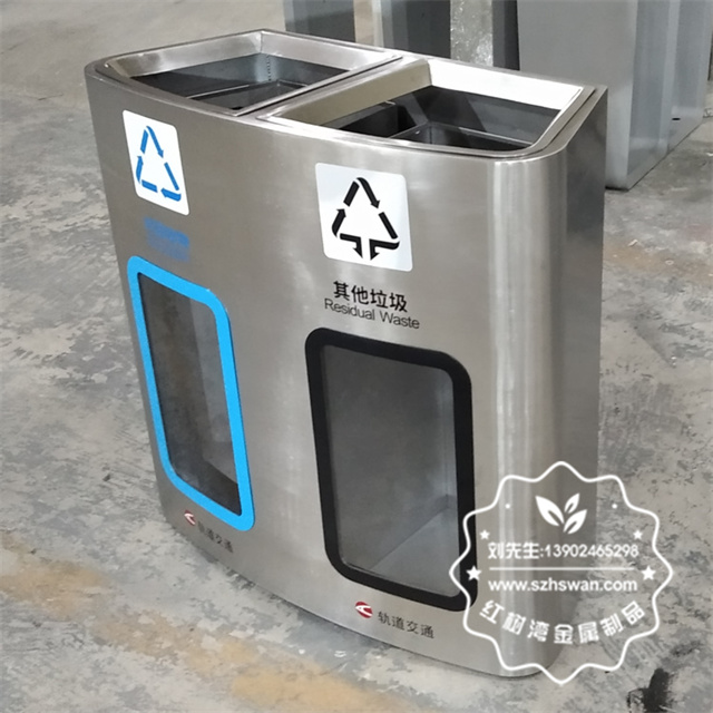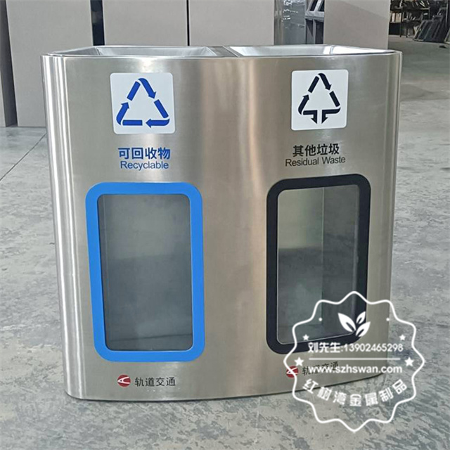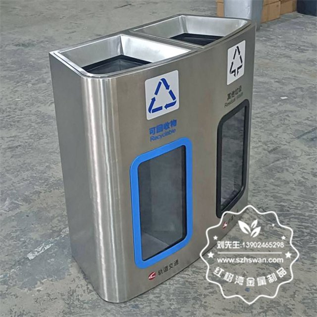 產品材質:地鐵站通道透明不銹鋼分類垃圾桶采用201#,202#,304#優質不銹鋼材料模壓成型,堅固耐用;內外表面光潔,減少垃圾殘留,易于清潔;配置鍍鋅板內桶,便于垃圾清倒;