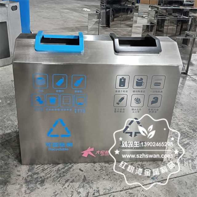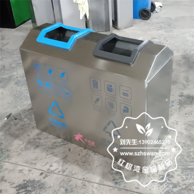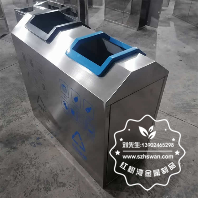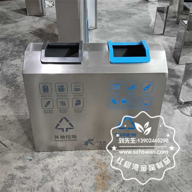 產品材質:室內車站商用不銹鋼分類垃圾桶采用201#,202#,304#優質不銹鋼材料模壓成型,堅固耐用;內外表面光潔,減少垃圾殘留,易于清潔;配置鍍鋅板內桶,便于垃圾清倒;
