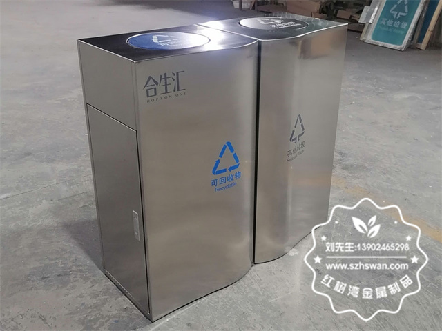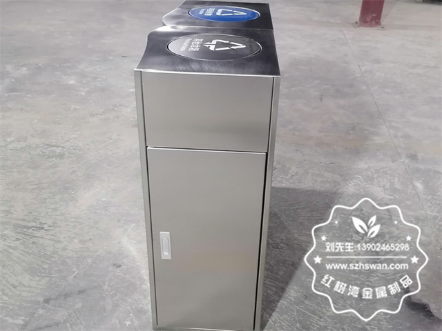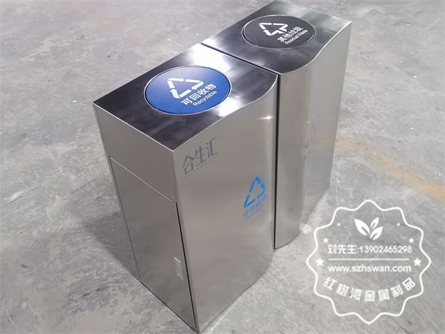產品材質:室內商場搖擺蓋不銹鋼分類垃圾桶采用201#,202#,304#優質不銹鋼材料模壓成型,堅固耐用;內外表面光潔,減少垃圾殘留,易于清潔;配置鍍鋅板內桶,便于垃圾清倒;