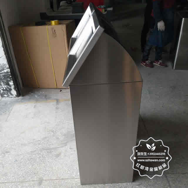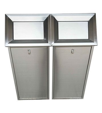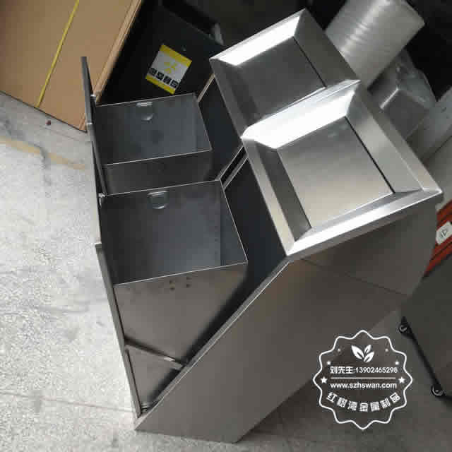 產品材質:屋形組合分類不銹鋼垃圾桶采用201#,202#,304#優質不銹鋼材料模壓成型,堅固耐用;內外表面光潔,減少垃圾殘留,易于清潔;配置鍍鋅板內桶,便于垃圾清倒;