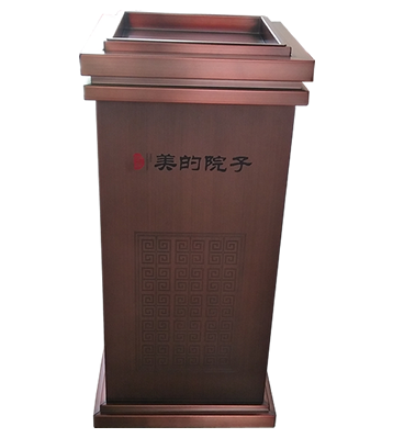 產品材質:高檔小區物業室內方形不銹鋼垃圾箱采用優質不銹鋼材料經專業除銹處理,表面采用專用戶外高溫烤漆,保證色彩鮮艷持久,有效防止生銹。外飾大理石表面呈金黃色,光滑亮麗彰顯高貴本色;