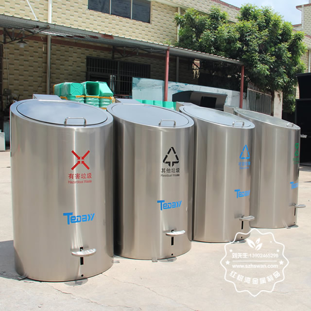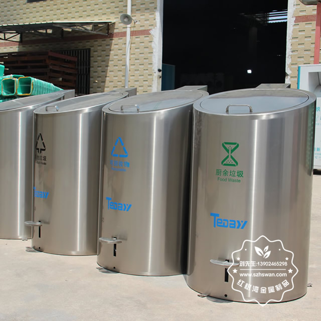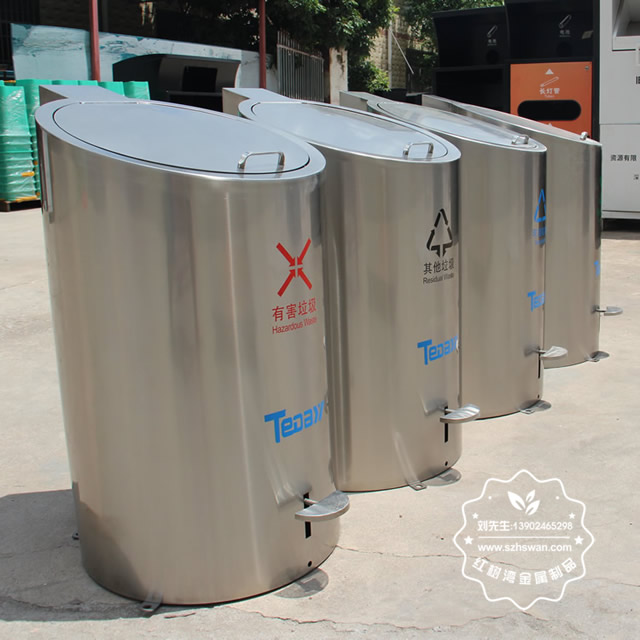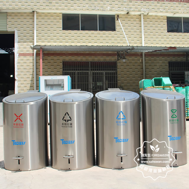 小區腳踏地埋升降式不銹鋼分類垃圾桶可以采用201不銹鋼板或者304不銹鋼板制作,可以根據客戶要求桶身表面噴塑和電鍍以及貼紙上色,這款垃圾桶型號為C726,上方單個桶尺寸是:550*590*990mm,強大的降式設備可以將地下的大號垃圾桶舉起來,方便環衛工人清運,單分類地下隱藏660L大容量內桶組合成垃圾分類投放收集點,可以根據小區要求放置4-5個桶,很多城市都在實施這款腳踏地埋升降式不銹鋼分類垃圾桶,比如四川瀘州這邊需要到2023年全部小區都要擺放這款桶。