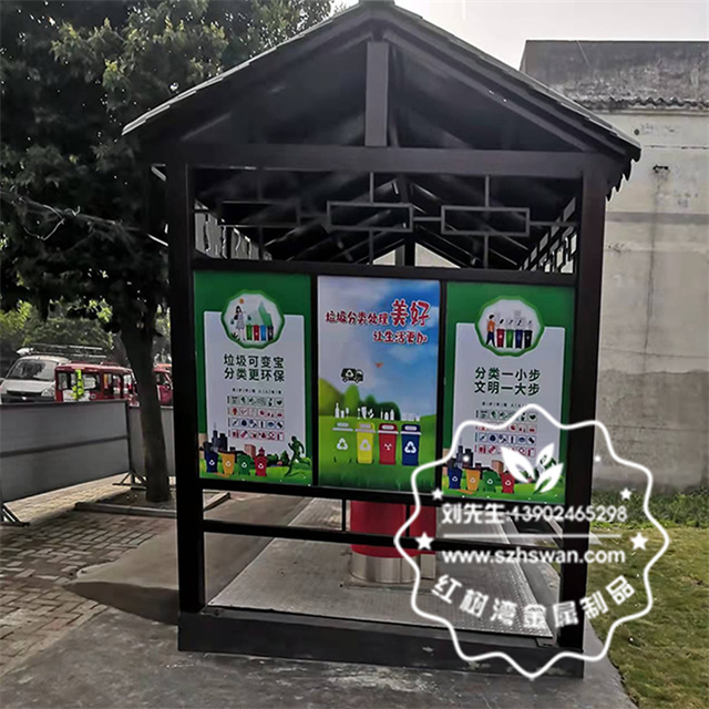 常見的垃圾分類亭,通常也稱為:垃圾亭、分類垃圾亭、垃圾分類回收亭等等。慣常一字排開擺著垃圾桶。而紅樹灣垃圾桶環保垃圾分類亭里卻看不到垃圾桶,分類垃圾桶都隱身到了地下,投放環境更清潔、更美觀。對應的不銹鋼投放器正面分別印刷可回收垃圾、有害垃圾、廚房干濕垃圾等細分標識,一目了然讓垃圾分類更方便。