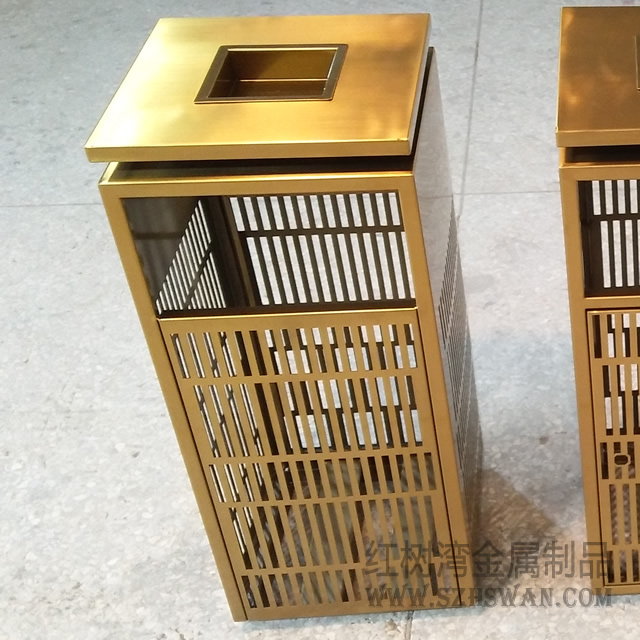 廣州天河區物業采購鏤空式土豪金方形不銹鋼垃圾桶項目
